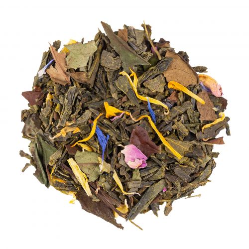 Ingrediente: Ceai verde Sencha (86%), ceai alb Pai Mu Tan, aromă naturală, gălbenele, petale de trandafir, aromă naturală de portocală, albastru de albăstrea. Amestec premium Alveus cu ingrediente provenite din culturi durabile și arome naturale.